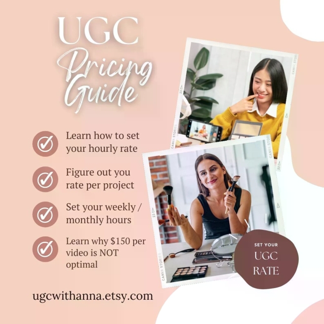 I take my education in business management, my experience in running an e-commerce shop, my 10 year background in teaching AND my UGC expertise since 2021 and combine all of this knowledge in no-nonsense, comprehensive guide you can use to price out your UGC business today.